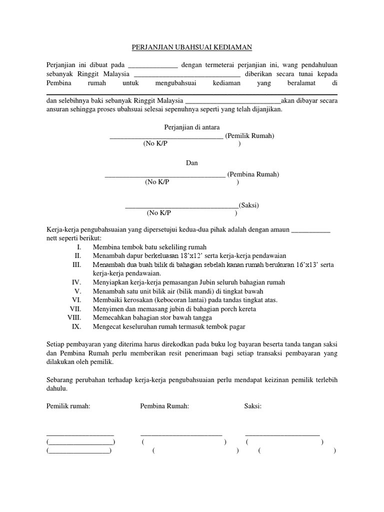 Surat Perjanjian Ubahsuai Rumah Pdf